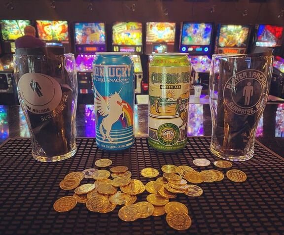 Cool new place in surprise! Old skool arcade with beer taps! Lots of games to play and lots of pinball too!! Friendly staff to boot! Giving five stars even though they don't have two of my favorite games, tempest and Mickey Thompson's off-road racing. But! They have super astroids and Mortal Kombat! I'd also like to see defender and missile command but who knows? Maybe they'll get them??