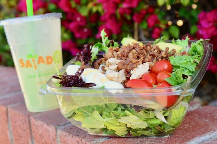 Salad and Go is the only place to go. Their salads are enormous, but not too enormous to share with somebody else...eat now and save some for the later type of deal. Lettuce is crisp and cold, veggies are fresh and the salad includes chicken or organic tofu at no extra cost!! Pay extra for steak though. Best part, their breakfast burritos, and salsa. 😛😛